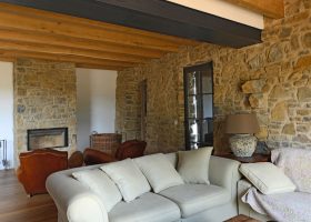 Preciosa finca con encanto, muy especial, de estilo tradicional catalán y con aires provenzales. Rodeada de naturaleza con unas inmejorables vistas y en un ambiente de tranquilidad. Situada en la comarca del Pla de l’Estany, cerca del sur de Banyoles y de la Costa Brava. La casa, de la que sólo se conservaban las paredes y algún forjado, fue deshabitada durante muchos años. También mantenía un horno de leña en la zona de cocina y una cisterna de agua para la recogida de aguas fluviales. El proyecto de rehabilitación es integral con ampliación de la vivienda. El cliente quería una casa con los rasgos principales de una masía pero con la funcionalidad de una casa moderna. En este sentido, se trabaja para la consolidación de fachadas y nuevas paredes de piedra realizadas con cal ecológica. Construcción de una cubierta de madera tipo ventilada con aislamiento de corcho. Forjado mixto de vigas de madera con capa de hormigón armado con conectores de madera. Aislamiento de la casa con corcho y utilización exclusiva de piedra de la finca, incluyendo todos los dinteles de ventanas, puertas y balcones. Distribución de una chimenea con aportación de calor en 4 salas diferents. El proyecto de rehabilitación aporta un incremento de la luz natural, zonas diáfanas y la calidez en el interior de la vivienda.